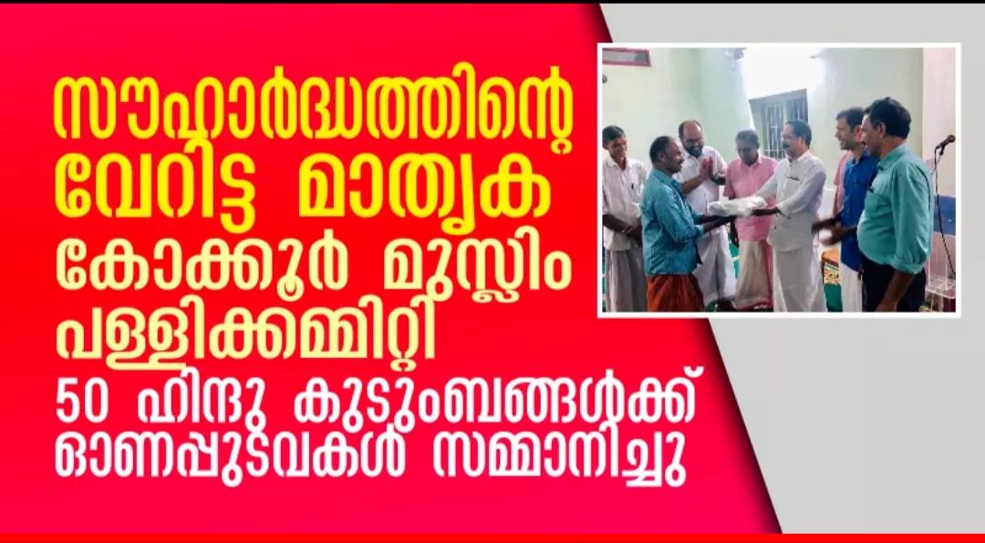 സൗഹാർദ്ധത്തിന്റെ വേറിട്ട മാതൃക: കോക്കൂർ മുസ്ലിം പള്ളിക്കമ്മിറ്റി 50 ഹിന്ദു കുടുംബങ്ങൾക്ക് ഓണപ്പുടവകൾ സമ്മാനിച്ചു.