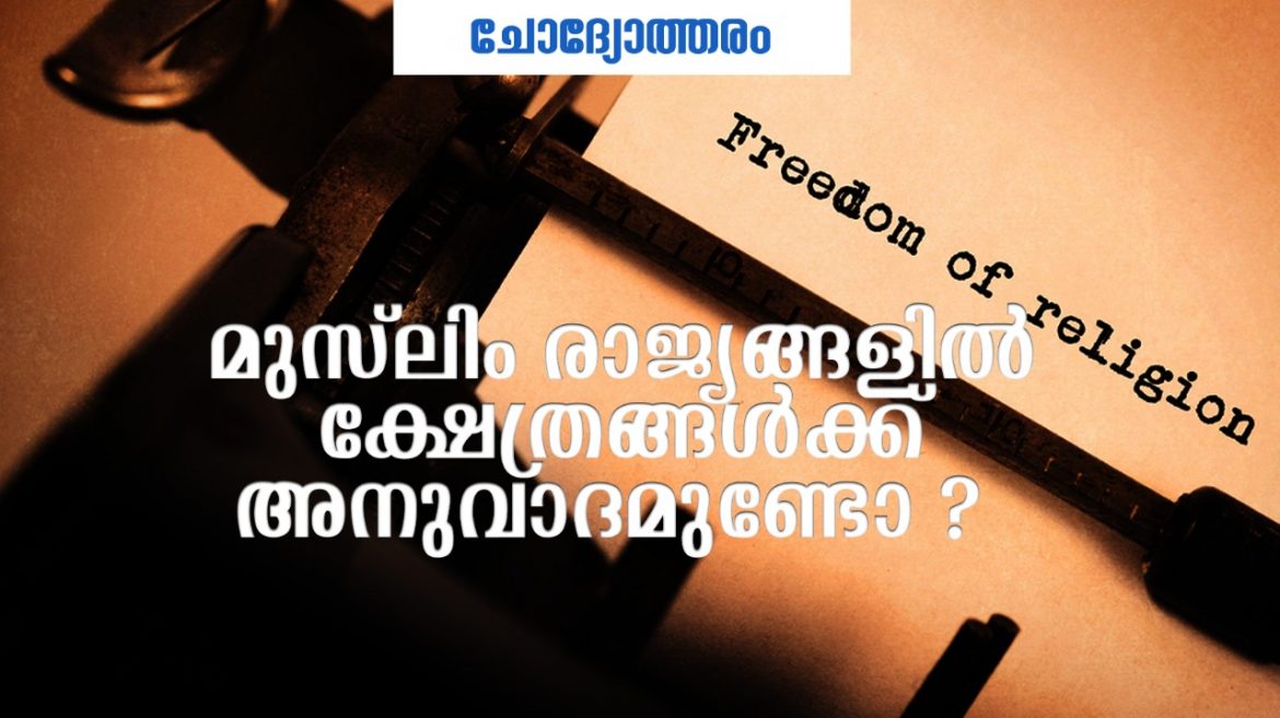 Question : “മതേതര നാടുകളിലേതുപോലെയോ കൂടുതലായോ മതന്യൂനപക്ഷങ്ങൾക്ക് ഇസ്ലാമികരാഷ്ട്രത്തിൽ മതസ്വാതന്ത്ര്യമുണ്ടാകുമെന്ന് പലരും അവകാശപ്പെടുന്നുണ്ട്. എന്നാൽ ലോകത്ത് ഏതെങ്കിലും മുസ്ലിം രാജ്യത്ത് ഹിന്ദുക്കൾക്ക് ക്ഷേത്രം നിർമിക്കാൻ അനുവാദമുണ്ടോ? പാകിസ്താനിലും ബംഗ്ലാദേശിലുമെല്ലാം ഉള്ളവതന്നെ തകർക്കുകയല്ലേ ചെയ്യുന്നത് ?